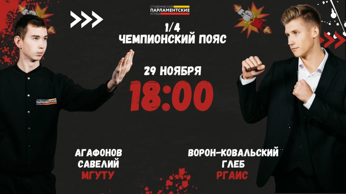 Савелий Агафонов СПК МГУТУ им. Разумовского (за) х Глеб Ворон-Ковальский СПК РГАИС (против)