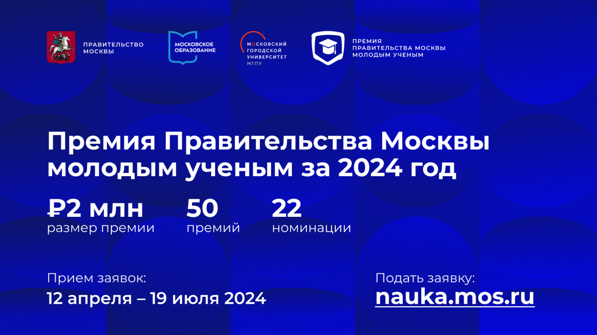 Премия Правительства Москвы для молодых учёных. Приём заявок на соискание до 19-го июля 2024 года.