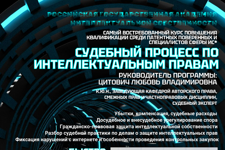 Международный центр повышения квалификации и профессиональной переподготовки РГАИС информирует о запуске программ «Судебный процесс по интеллектуальным правам» и «Профессиональный оценщик НМА и ИС».