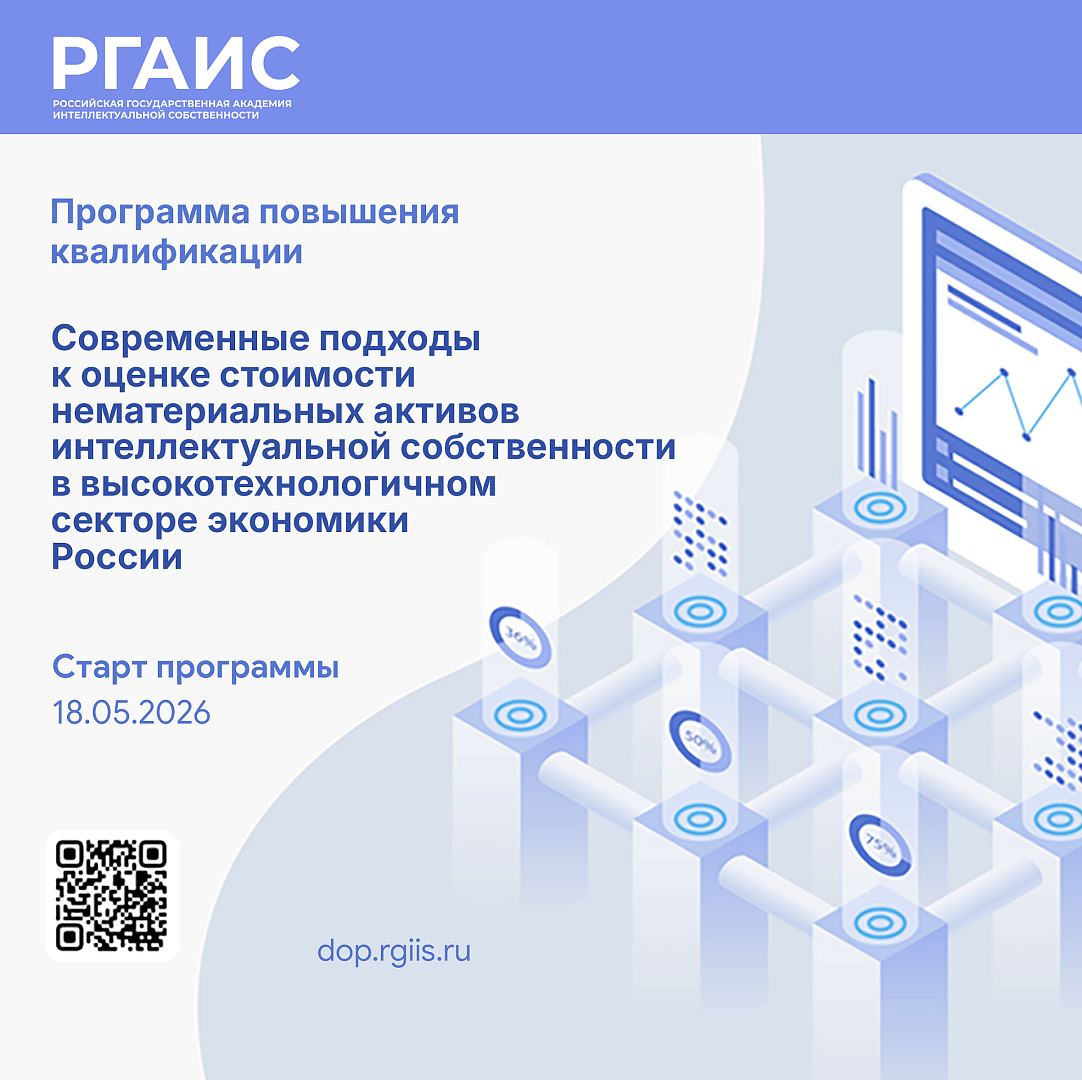 Заявки принимаются на официальном сайте: https://dop.rgiis.ru/programmy-obucheniya/sovremennye-podhody-k-ocenke-stoimosti-nematerial-nyh-aktivov-intellektual-noj-sobstvennosti-v-vysokotehnologichnom-sektore-ekon/