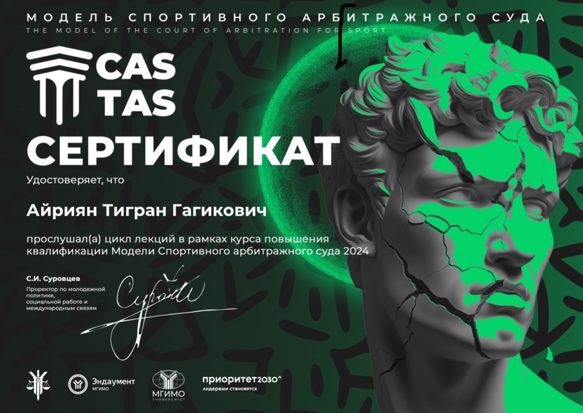 В апреле 2024 года в Университете МГИМО МИД РФ завершились заочный и очный этапы Модели Спортивного арбитражного суда в рамках программы стратегического академического лидерства «Приоритет 2030».
