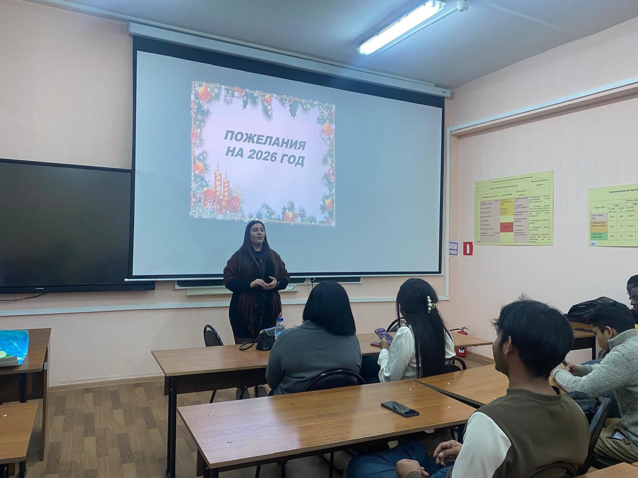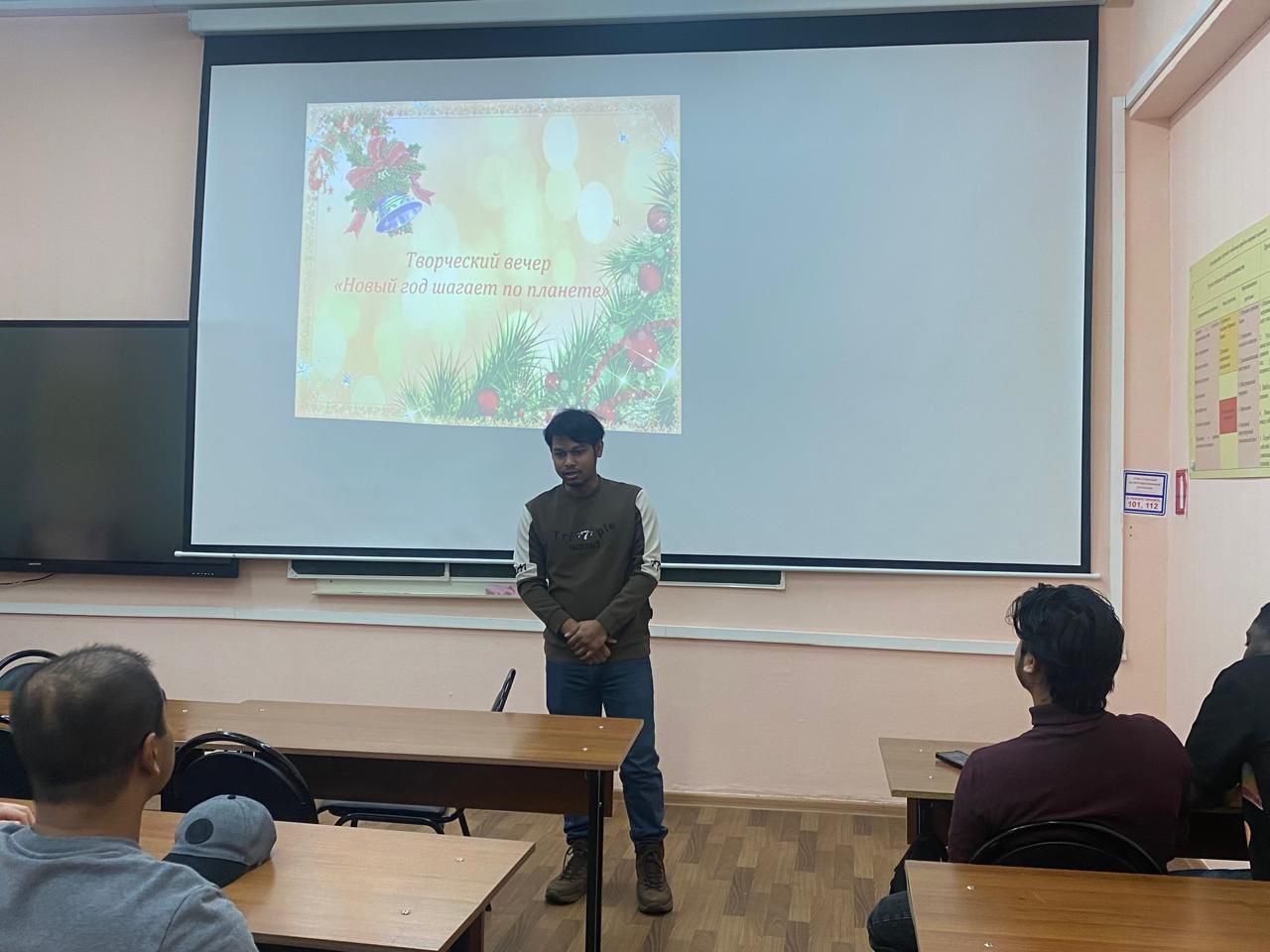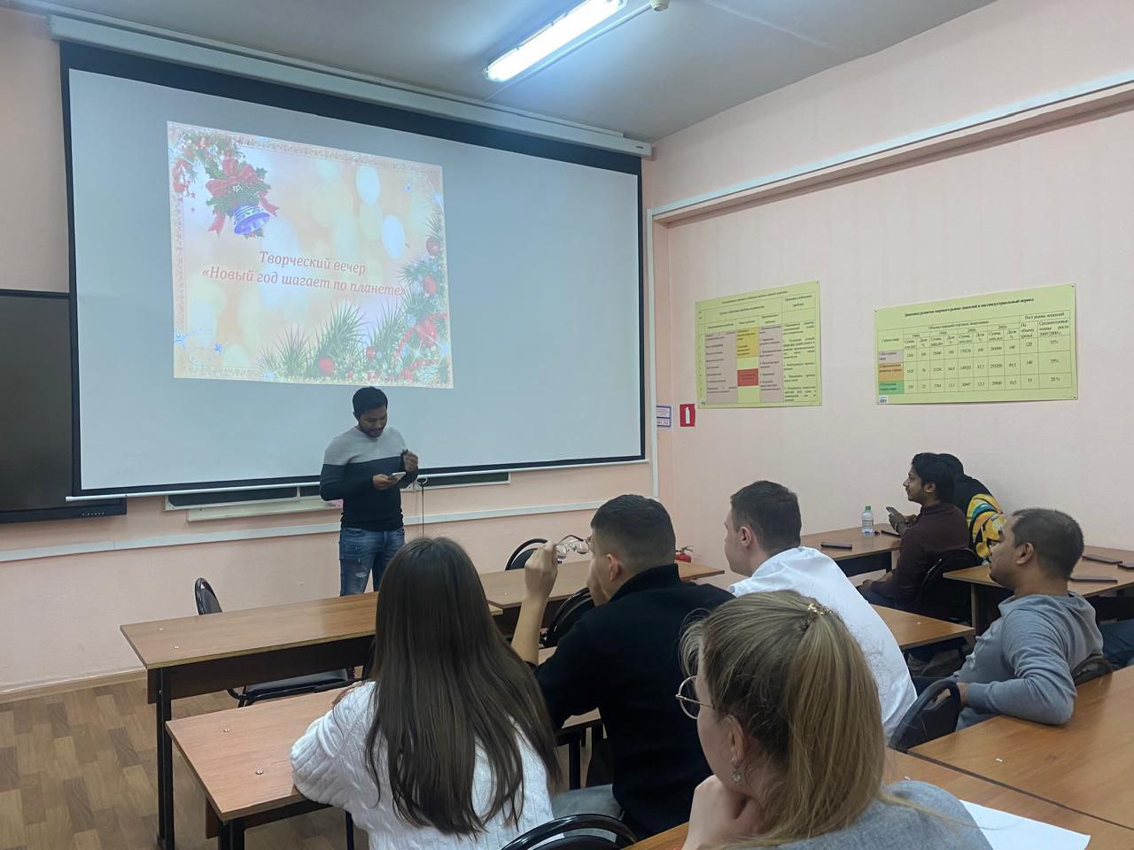 17 декабря в стенах РГАИС прошёл незабываемый творческий вечер «Новый год шагает по планете» под руководством преподавателей Штехман Е.А., Игнатовой Н.Б., собравший иностранных студентов из многих стран мира. Мероприятие стало настоящей международной площадкой для культурного обмена и погружения в атмосферу новогоднего торжества.