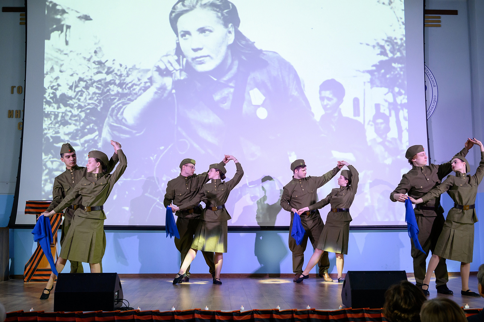 Праздничное представление, подготовленное студентами под руководством проректора Елены Китаевой и преподавателя Елены Некрасовой, началось сценой из мирной жизни в июне 1941 года, которая была резко прервана разрывами снарядов и воем сирен. Началась война. Далее перед зрителями была развернута ретроспектива основных событий и битв Великой Отечественной войны: за Брест, Ленинград, Сталинград, Курск, Москву.