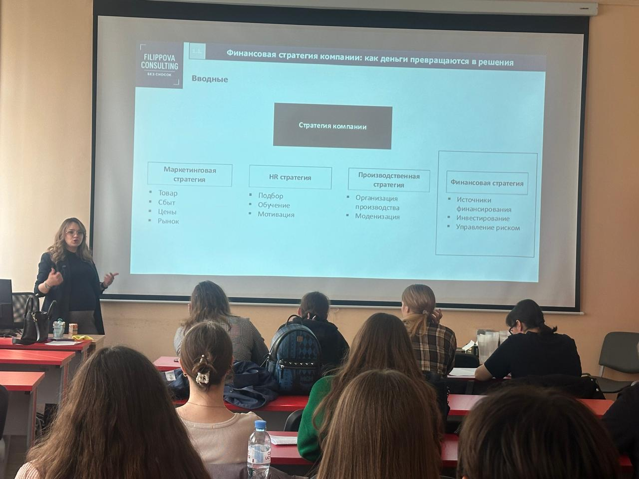 11 октября 2025 года в рамках проекта «Экспертная гостиная: стратегия в жизни» кафедры Управления инновациями и коммерциализации интеллектуальной собственности РГАИС состоялась лекция Людмилы Филипповой, финансового директора крупного строительного холдинга и финансового консультанта.