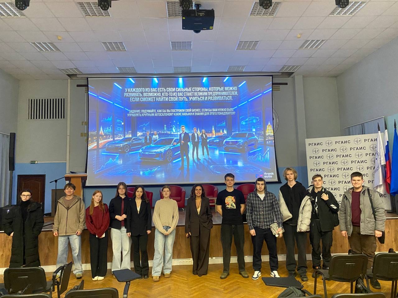 3 февраля в РГАИС в рамках проекта «Предпринимательский класс в московской школе» состоялся бизнес-тренинг «Предпринимательство в автомобильном бизнесе», который провела Ирина Франк, управляющий директор компании «Frank Auto», опытный руководитель с более чем 20-летним стажем в автобизнесе.