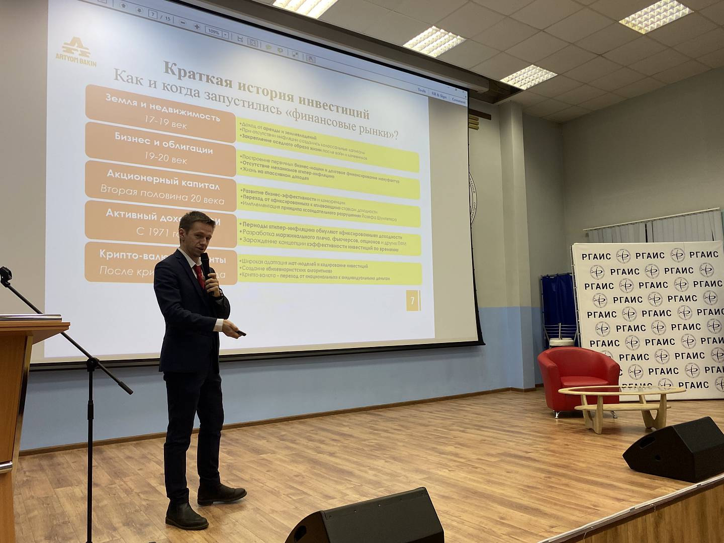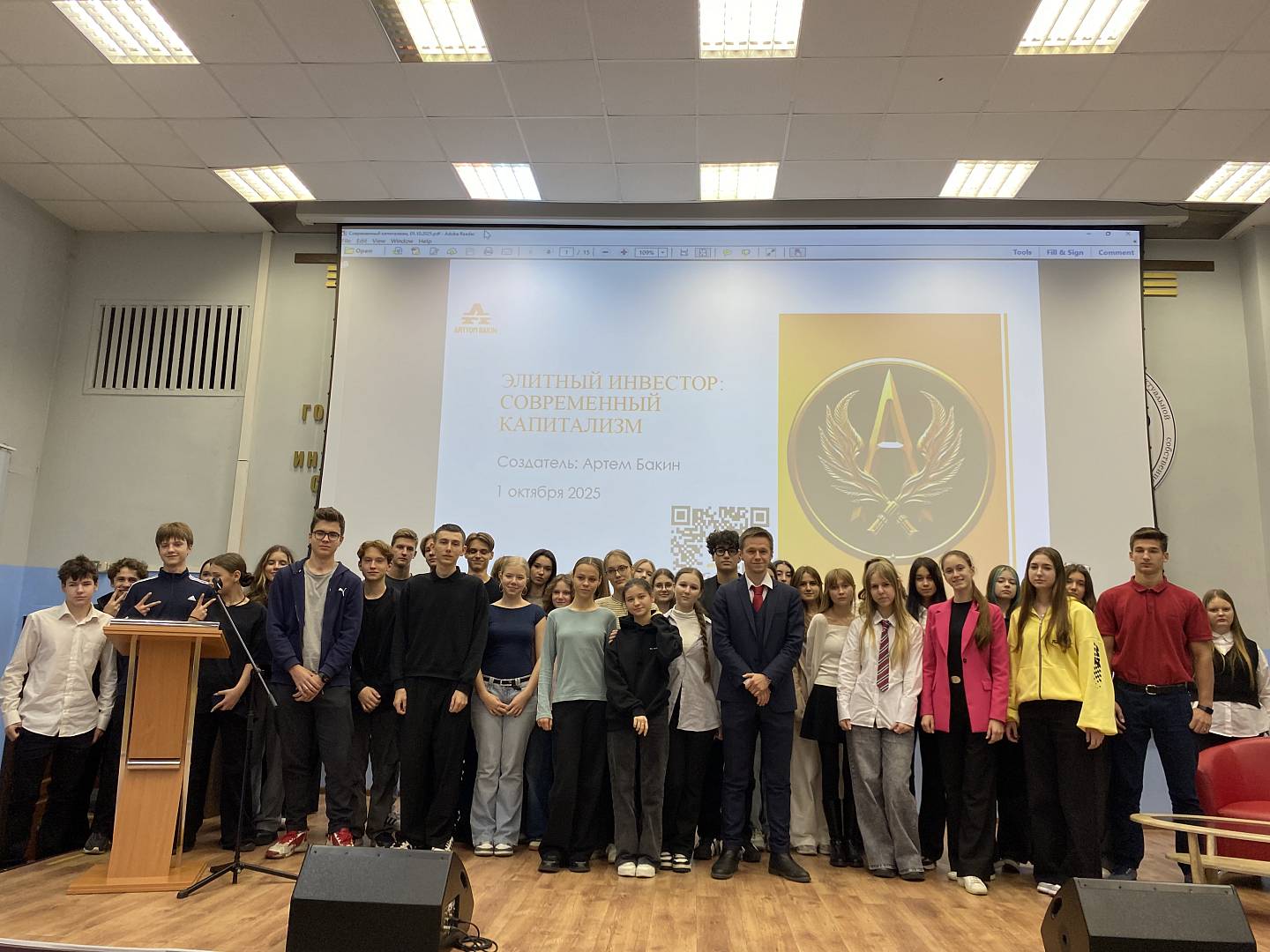 Артем Бакин, портфельный управляющий, инвестор, писатель и опытный аналитик по финансовым рынкам раскрыл для учащихся 10-11 предпринимательских классов школ № 1569 «Созвездие», № 2009 и школы «Свиблово» краткую историю экономики и как на неё надстроена инвестиционная отрасль, доступно объяснил механику построения капитала и возможности планирования бизнеса.