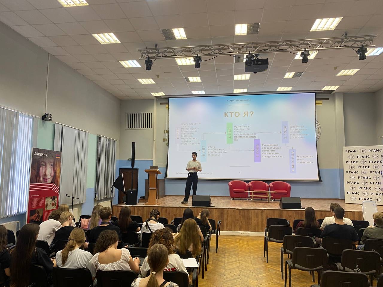 30 мая в РГАИС состоялся бизнес-тренинг «Управление в музыкальной индустрии», который провел руководитель отдела разработки и организации мероприятий креативного агентства ZEFIR EVENTS, независимый специалист по управлению интеллектуальной собственностью, музыкальный продюсер, менеджер, song- и ghostwriter, дистрибьютор Степан Сергеевич Попов (Фарбер).