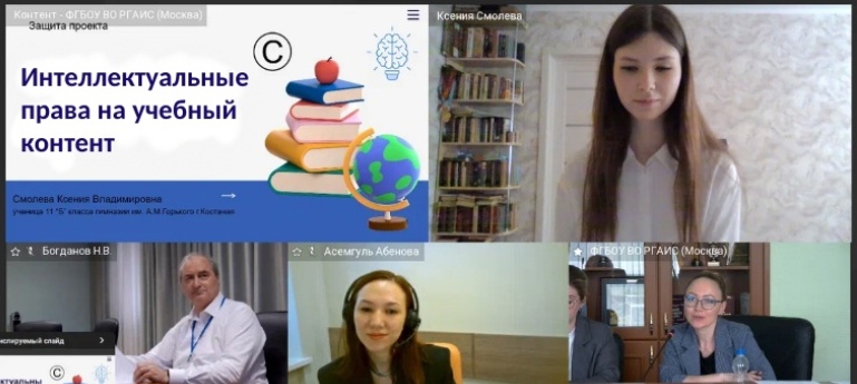 Смолева Ксения, г. Костанай, Республика Казахстан (тема работы «Интеллектуальные права на учебный контент»)