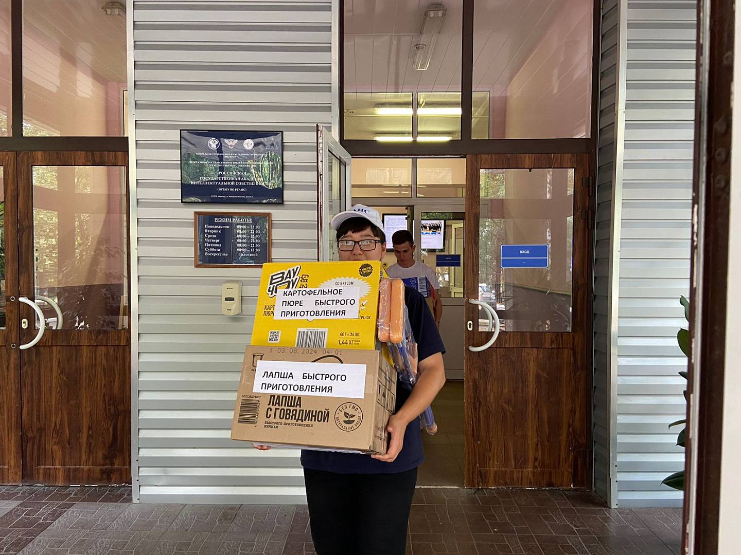 Гуманитарный груз студенты и представители ректората Академии передали лично в руки сотруднице фонда «Заволжский тыл» Татьяне Геннадьевне Гыбиной.