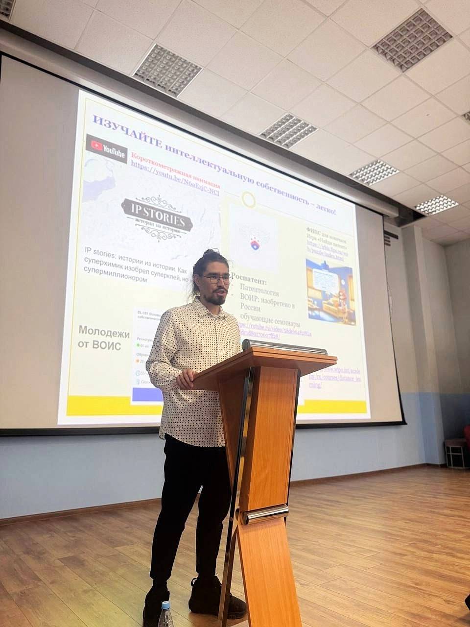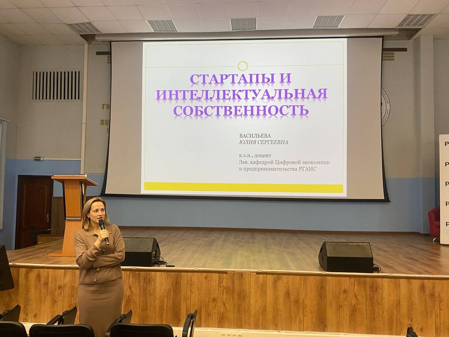 Заведующая кафедрой Цифровой экономики и предпринимательства Юлия Васильева и преподаватель кафедры Гражданского и предпринимательского права Егор Голубев рассказали школьникам о том, как создать свой бизнес на основе интеллектуальной собственности.