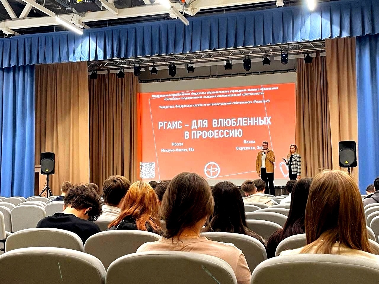 19 марта на лекции в МБОУ ОЦ «Сабурово» заместитель начальника Отдела международных и просветительских проектов Глеб Протопопов и заместитель декана факультета Управления интеллектуальной собственностью Ольга Ветлицкая познакомили учащихся 9, 10, 11 классов с многообразием объектов интеллектуальной собственности, рассказали о реализуемых РГАИС направлениях подготовки, условиях поступления и перспективах трудоустройства.