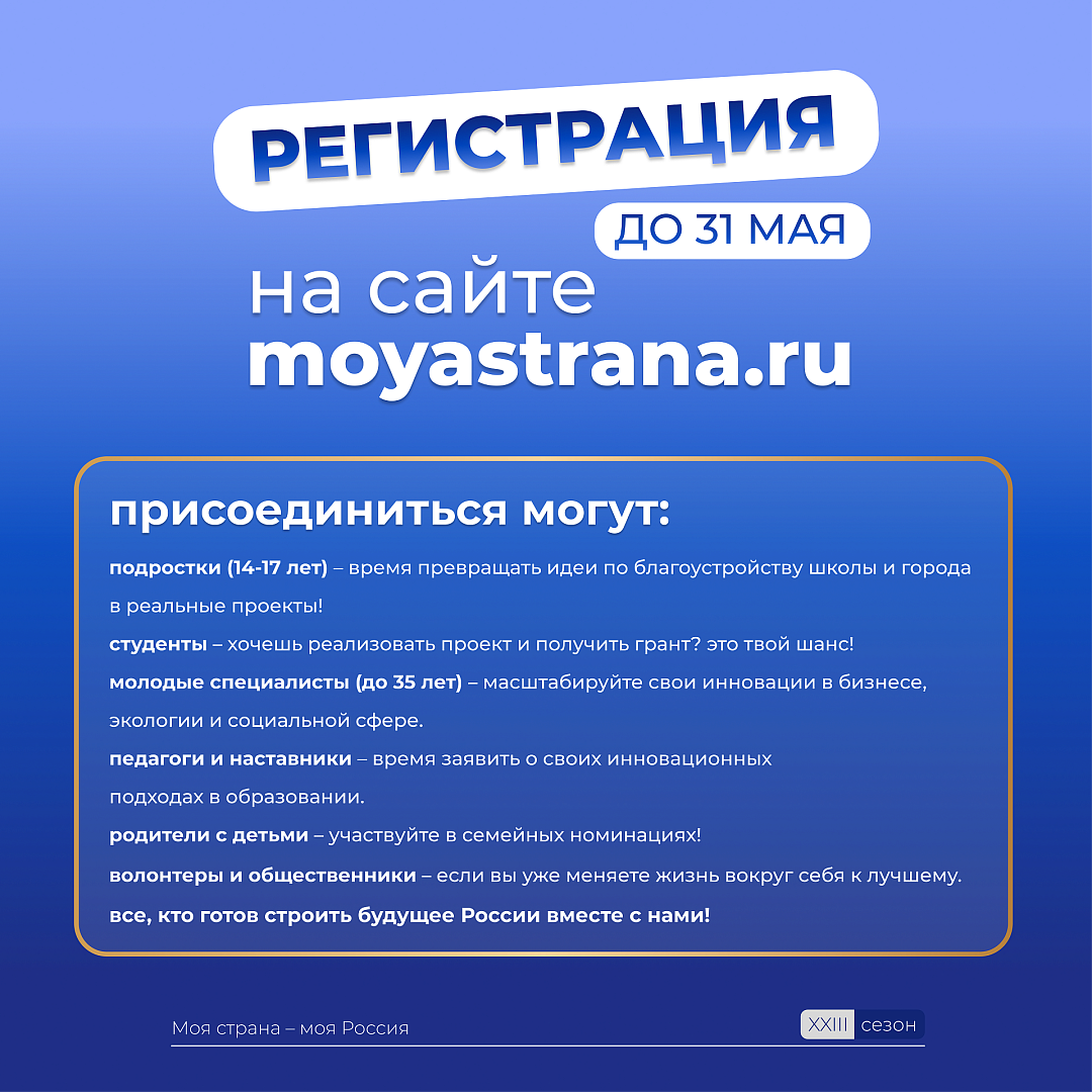 Стартовал 23-й сезон Всероссийского конкурса «Моя страна — моя Россия»!