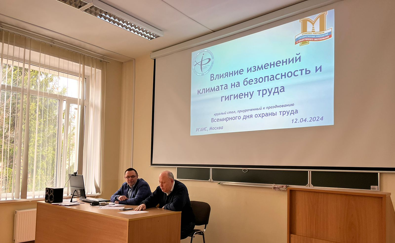 12 апреля 2024 г. в РГАИС при поддержке первичной профсоюзной организации мероприятий Московской городской организации Общероссийского профессионального союза работников государственных учреждений и общественного обслуживания Российской Федерации проведен круглый стол на тему «Влияние изменений климата на безопасность и гигиену труда», приуроченный к празднованию Всемирного дня охраны труда.
