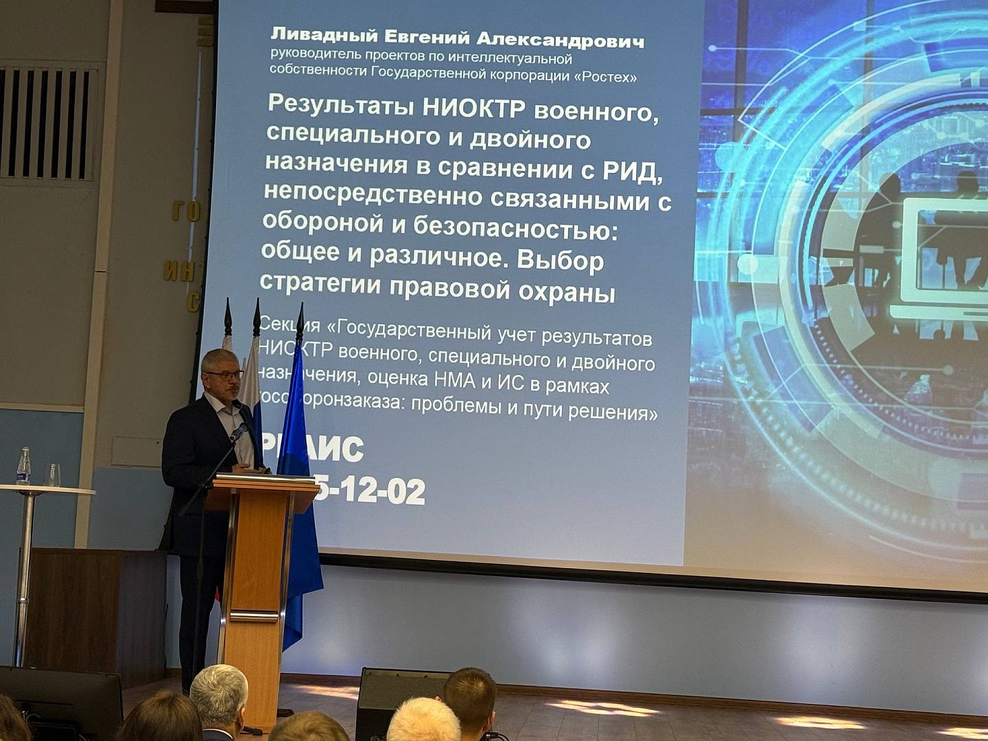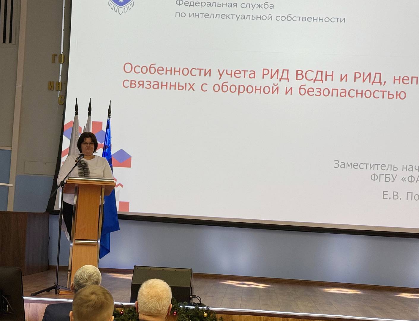 С докладами выступили представители Минобороны России (Е.Н. Андрощук, А.И. Сухий), госкорпорации «Ростех» (Е.А. Ливадный), ФГБУ ФАПРИД (Е.В. Попова) и ФГБОУ ВО РГАИС (В.Р. Смирнова, Х.А. Мамаджанов). Секция завершилась мастер-классом по проведению патентного поиска (В.Д. Кочеткова).