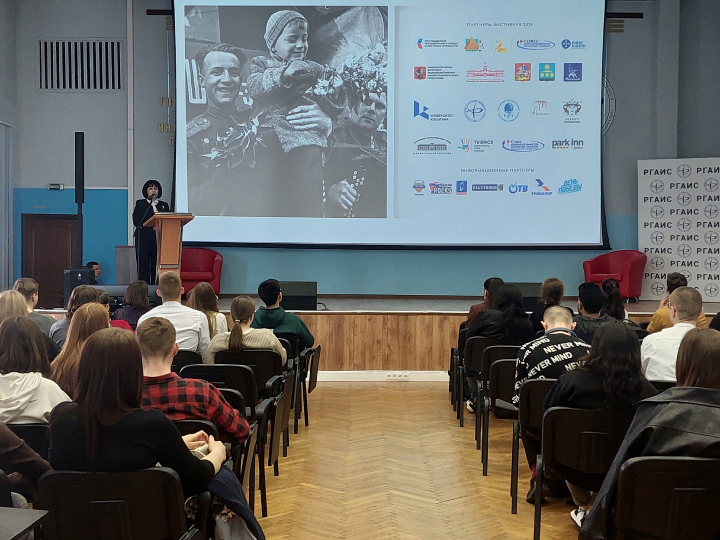 16 апреля на площадке РГАИС открылся III Международный кинофестиваль «День Победы». Участников мероприятия приветствовали проректор по молодежной политике и внешним связям Елена Китаева и программный директор кинофестиваля, член Правления Гильдии неигрового кино и телевидения, режиссер кино и телевидения, преподаватель кино Елена Алферова.