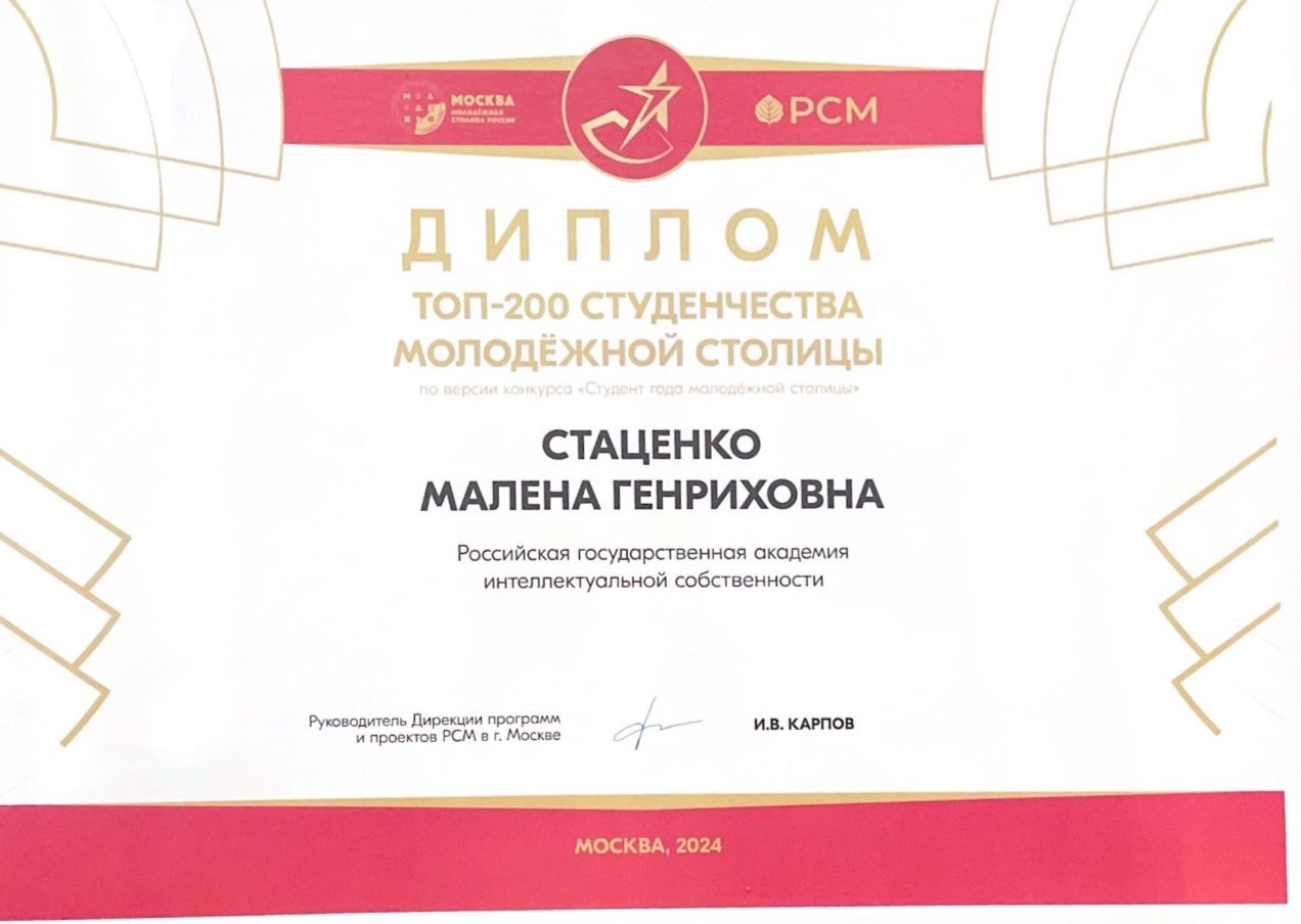 Активисты СНО РГАИС Малена Стаценко и Сергей Лященко в ТОП – 200 студенчества молодежной столицы!