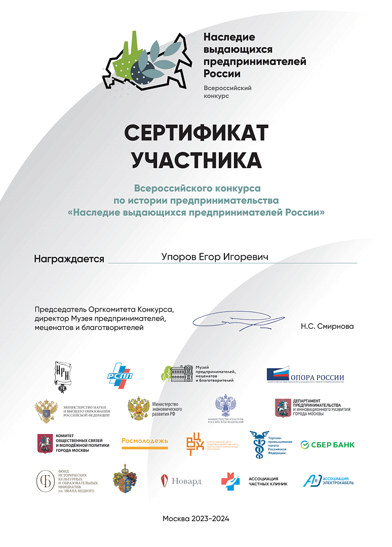 Научные работы ребят были заявлены в номинации «Женское предпринимательство в дореволюционной России» и посвящены изучению феномена женского предпринимательства на примерах таких выдающихся личностей как М.Ф. Морозова и А.В. Мараева.