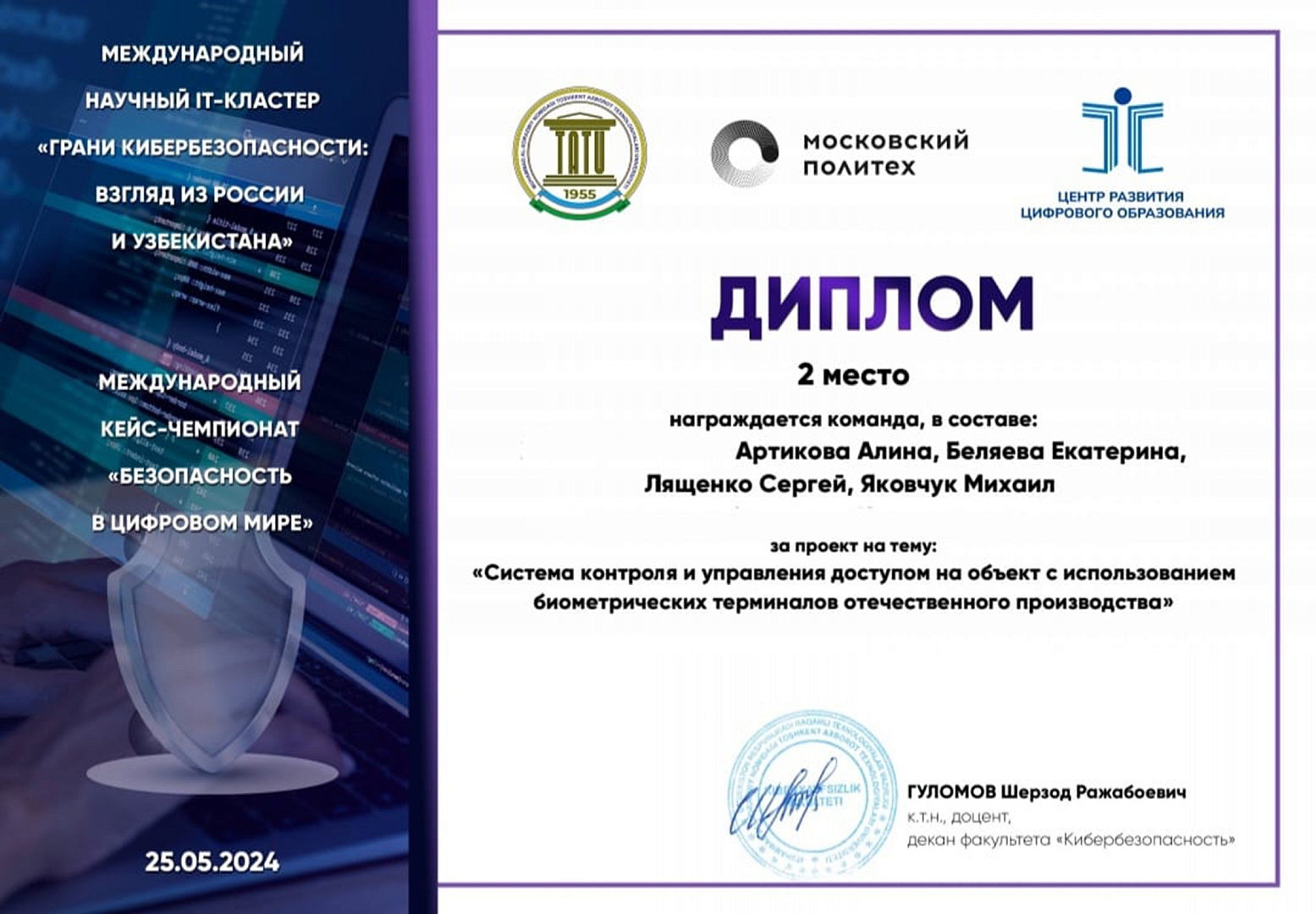 Команда СНО факультета УИС РГАИС заняла 2 место в IT-кластере «Грани Кибербезопасности: Взгляд из России и Узбекистана»