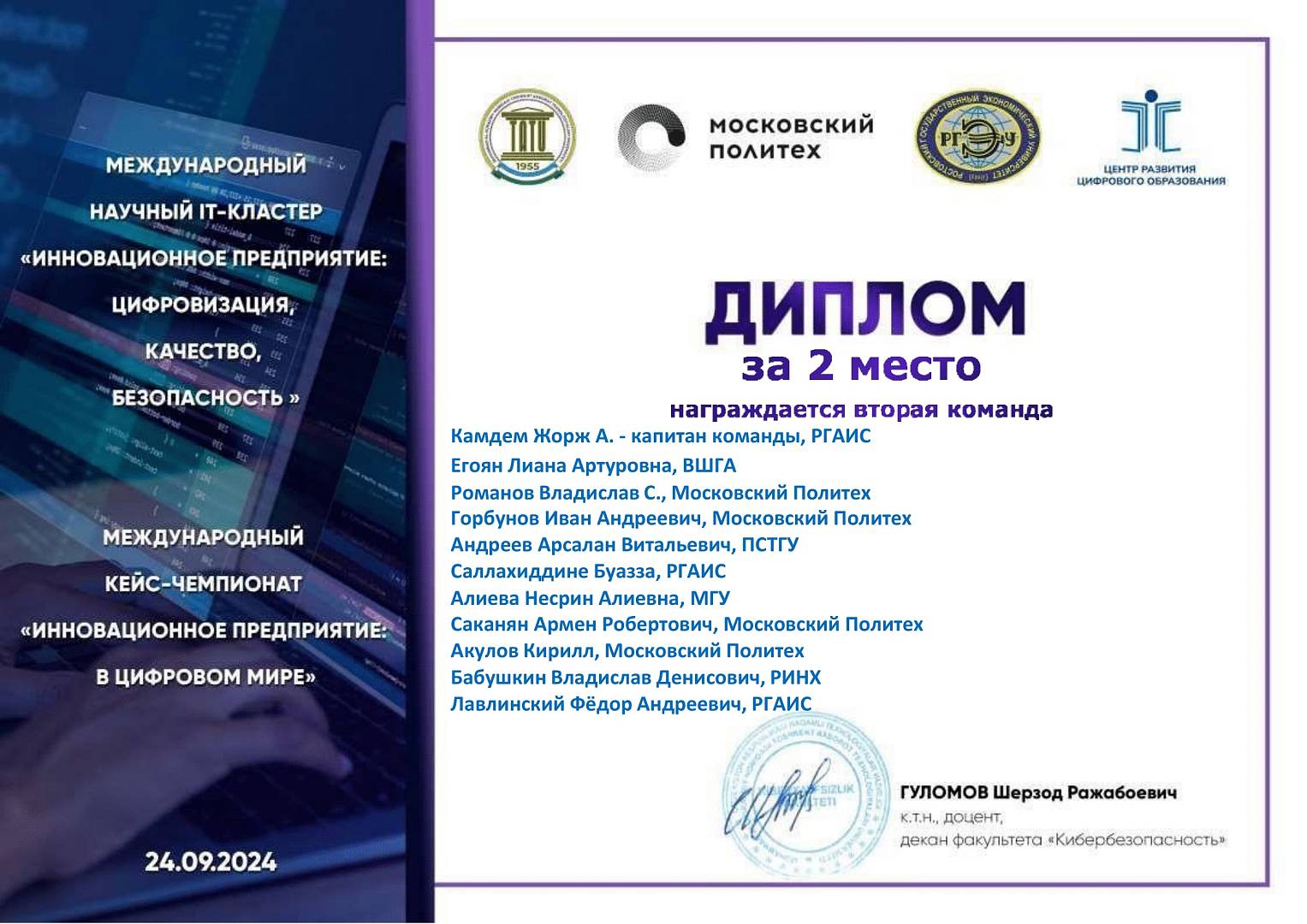 СНО «Эксперт» факультета УИС – призеры международного научного IT-кластера «Инновационное предприятие: цифровизация, качество, безопасность»!