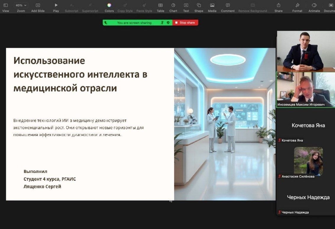 9 декабря 2025 года студенты факультета УИС приняли участие в Международной научно-практической конференции «Управление активами – 2025», которая прошла в МГИМО при поддержке Группы компаний «Регион». Тема конференции в этом году: «Искусственный интеллект в принятии экономических решений: активы, акторы, стратегии». Лященко Сергей (группа ЭМ-211) выступил в секции «Стратегическая чувствительность отраслей к внедрению искусственного интеллекта» с докладом «Интеллектуальная собственность и искусственный интеллект как драйверы развития медицинской отрасли». (научный руководитель - к.э.н., доцент Нургазина Г.Е.)