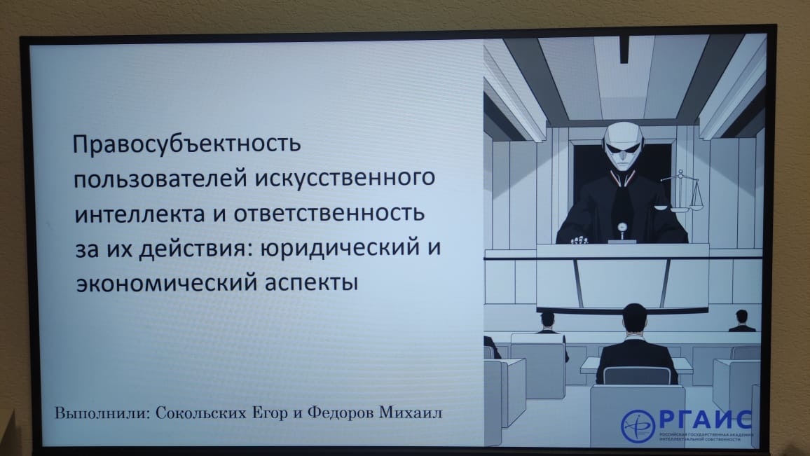 Полевой Виталий (ЭК-411), Федоров Михаил (ГМУ-411) и Сокольских Егор (ЭМ-411) участвовали в работе секции «Правовое регулирование искусственного интеллекта в современных экономических процессах». Полевой Виталий представил доклад «Новый устав OpenAI PBC как зеркало нового правового регулирования экономики искусственного интеллекта». Сокольских Егор и Федоров Михаил выступили с совместным докладом на тему «Правосубъектность пользователей искусственного интеллекта и ответственность за их действия». (научный руководитель - к.э.н., доцент Нургазина Г.Е.)