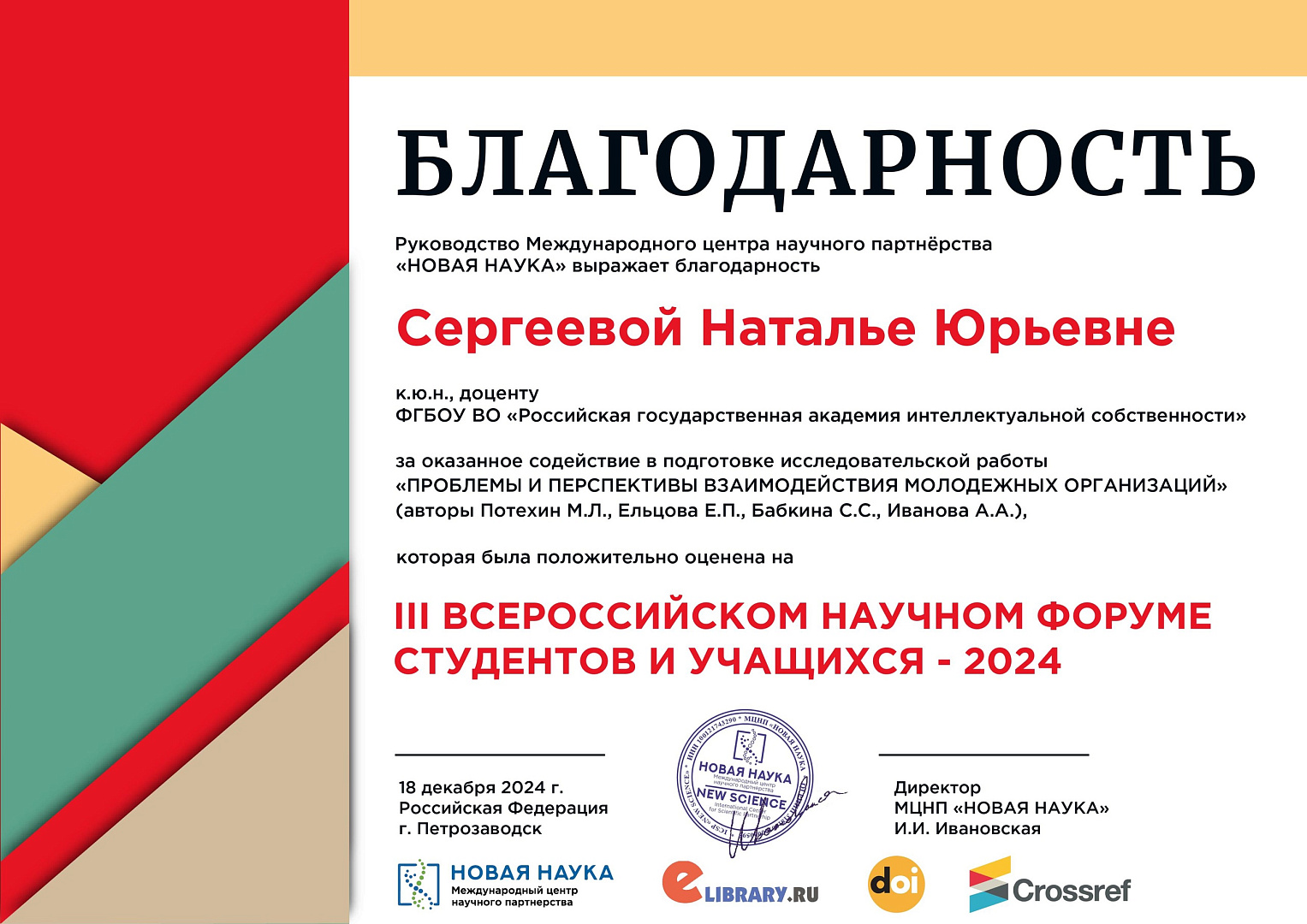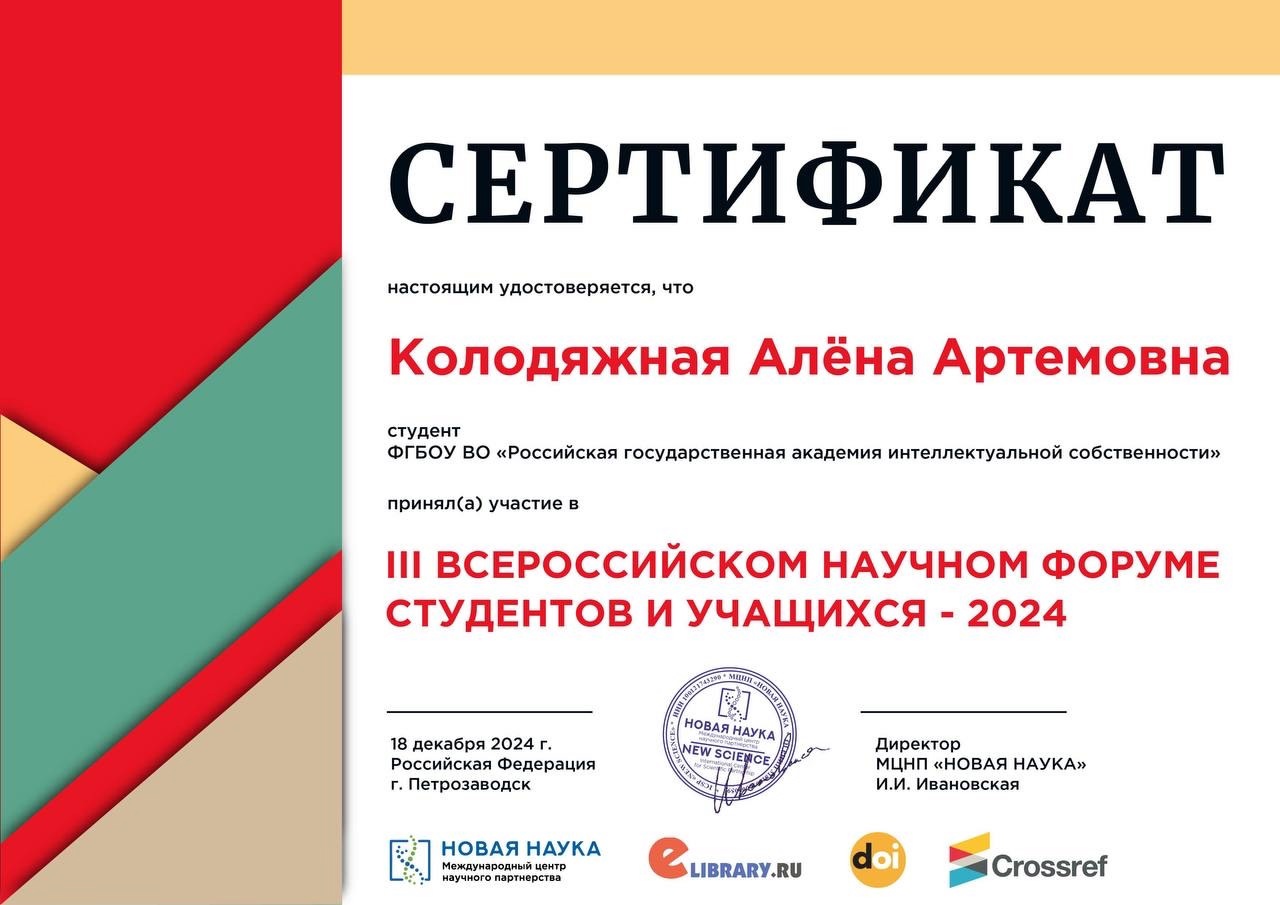 СНО Юрфака РГАИС на III Всероссийской научно-практической конференции «ВСЕРОССИЙСКИЙ НАУЧНЫЙ ФОРУМ СТУДЕНТОВ И УЧАЩИХСЯ — 2024»