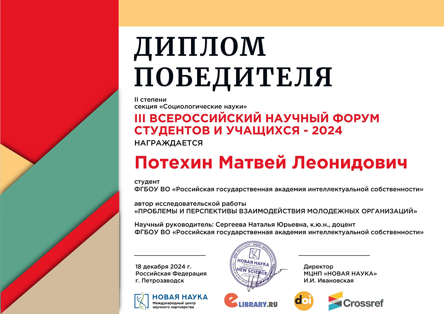 18 декабря 2024 года состоялась III Всероссийская научно-практическая конференция «ВСЕРОССИЙСКИЙ НАУЧНЫЙ ФОРУМ СТУДЕНТОВ И УЧАЩИХСЯ — 2024», прошедшая в г. Петрозаводске.