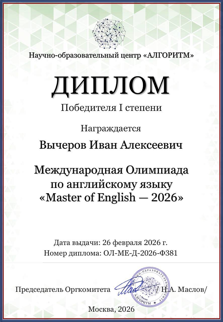 Студент РГАИС – победитель Международной олимпиады по английскому языку «Master of English – 2026»!