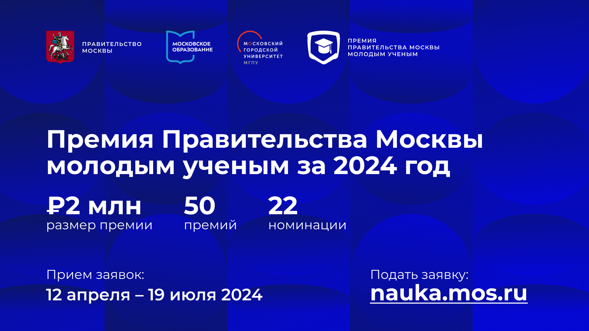 «В этом году исполняется 11 лет с момента учреждения премии Правительства Москвы молодым ученым. За это время ее получили более 650 ученых из вузов и научных организаций столицы за исследования и разработки, полезные для города и страны. Популярность премии неизменна: ежегодно более тысячи исследователей подают заявки на участие в конкурсе», — подчеркнул заместитель руководителя Департамента образования и науки Москвы Антон Молев.