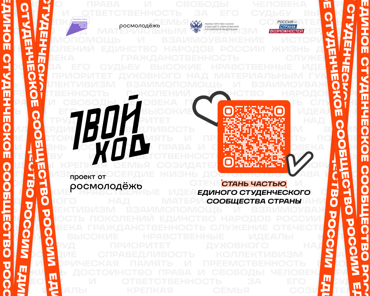 «Твой Ход» является частью национального проекта «Молодёжь и дети», при поддержке Министерства науки и высшего образования РФ. Это единое движение молодых лидеров и инициативных студентов со всей России.
